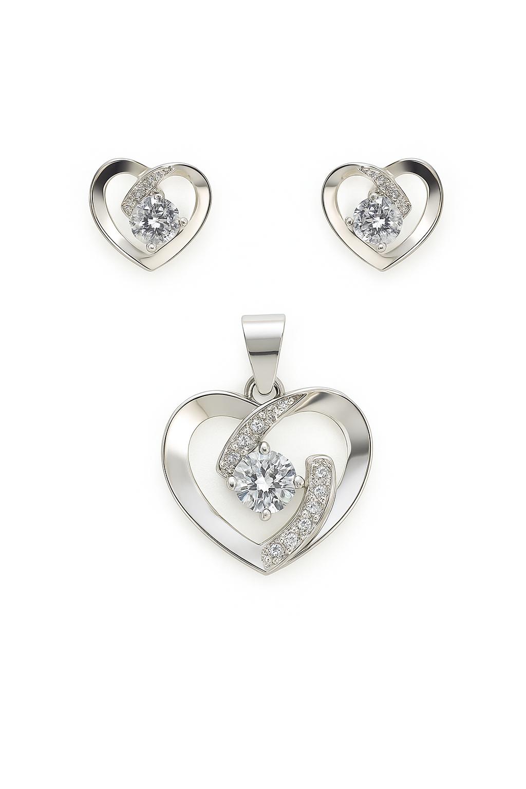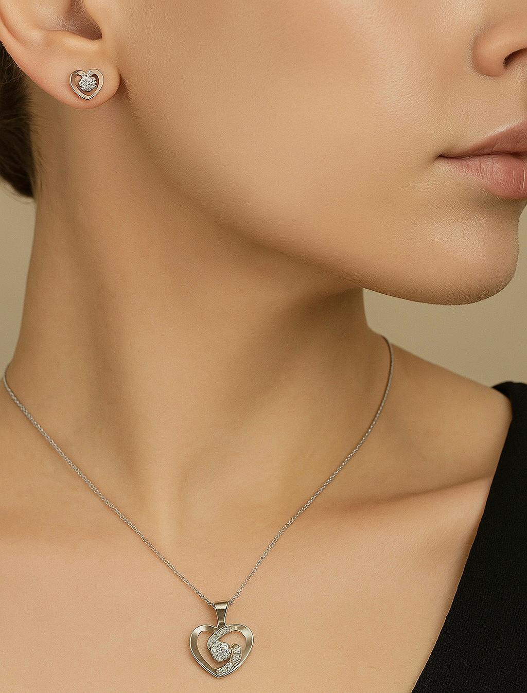 Celebrate love that lasts forever with the Eternal Embrace Heart Set by Gehnaji. This elegant set features a beautifully crafted pendant and matching stud earrings in a timeless heart-shaped design. Embellished with shimmering cubic zirconia stones, the graceful curves of each piece symbolize unity and affection. Perfect for both everyday wear and special occasions, this set is a meaningful addition to any jewelry collection — crafted with trust, worn with pride.