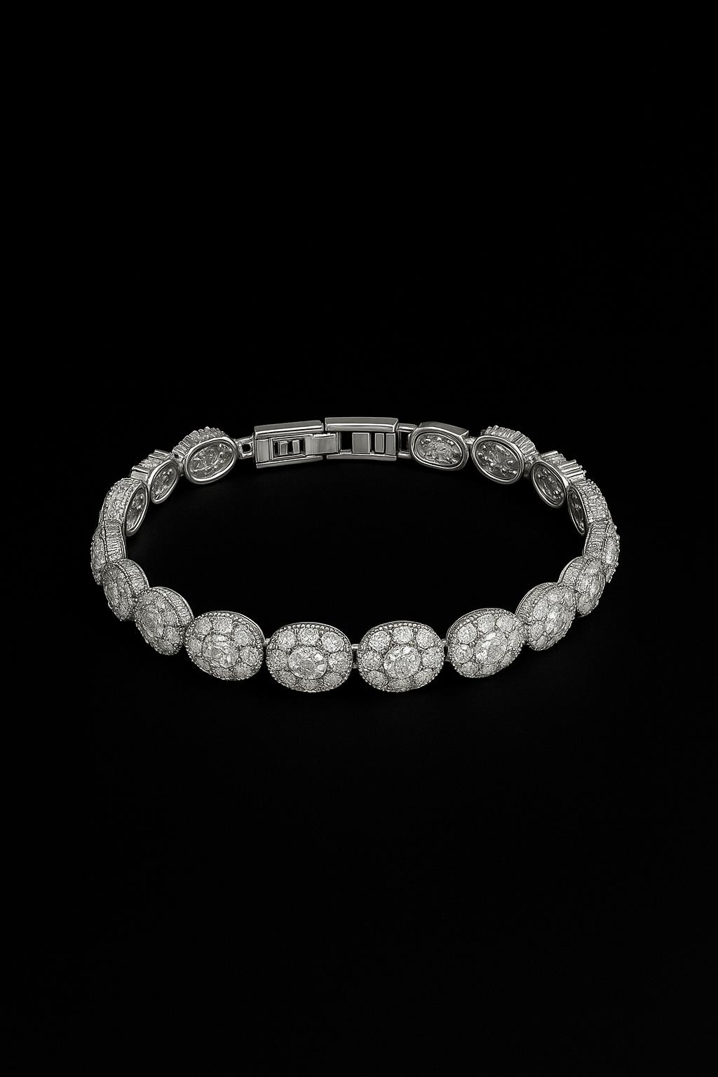 •Features a seamless arrangement of oval motifs encrusted with high-quality cubic zirconia stones